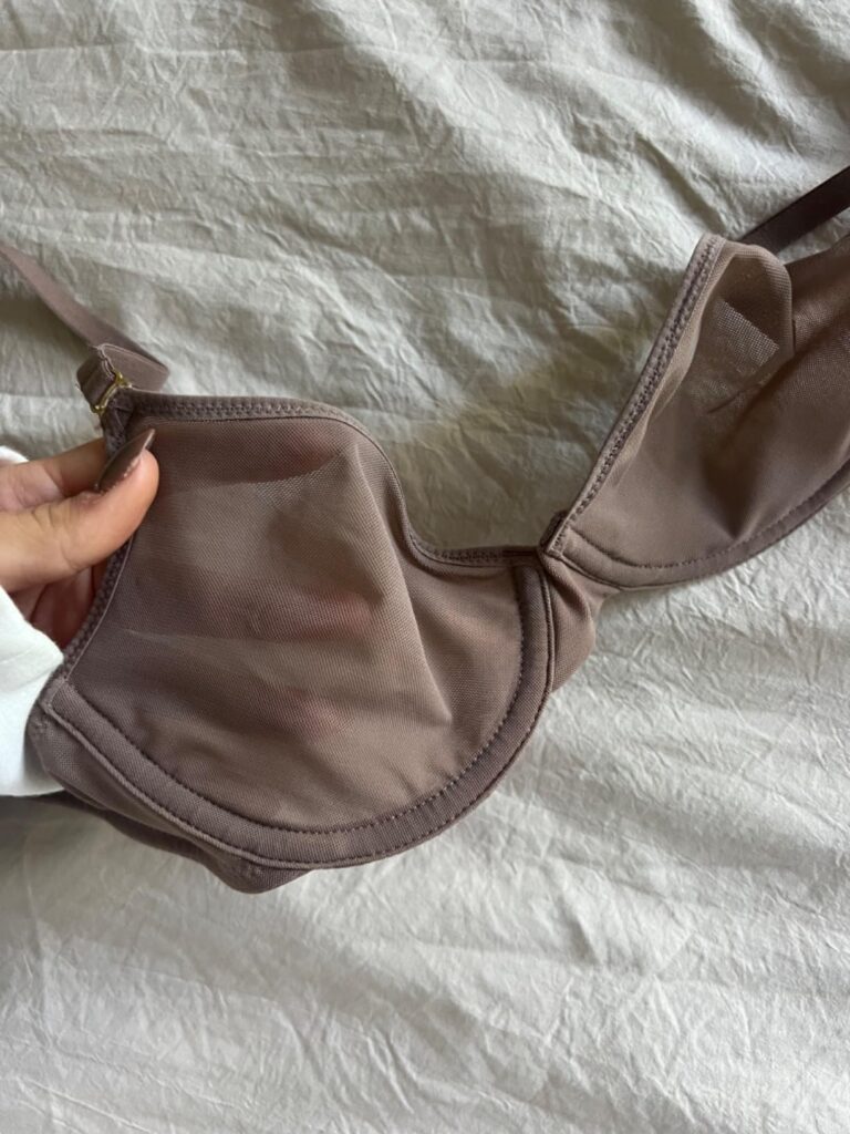 Proper fit means the underwire sits flat against your ribcage without poking, the band stays level around your torso, and the cups contain your breast tissue without spillage over the top. The center gore should lie flat against your sternum, and the straps shouldn’t dig into your shoulders. You should feel lifted and supported without discomfort.